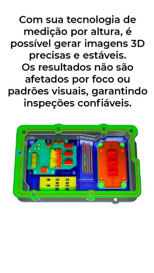 Inspeção 3D com integração simples, sem necessidade de movimento. Ideal para detecção de defeitos, inspeção e medições, leitura e verificação (OCR).