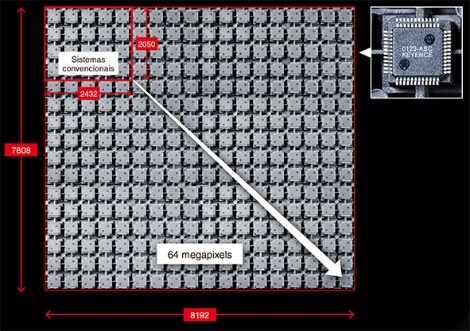 A nova câmera de 64 megapixels melhora significativamente a precisão em inspeções convencionais. Uma única captura de imagem fornece uma faixa mais ampla com detalhes nítidos para que se tenha maior estabilidade de inspeção.