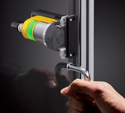 Travamento mecânico, com atuador articulado e força de retenção de 2000N
