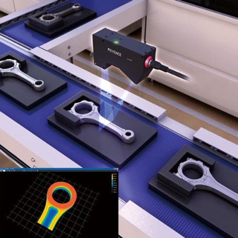Os formatos em 3D de alvos em movimento são medidos para determinar se os mesmos estão corretos ou não. Seus próprios algoritmos originais de medição podem ser criados com base nos dados de perfil que são enviados em altas velocidades do dispositivo de medição.