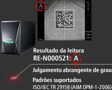 Códigos 2D marcados podem ser lidos com a câmera integrada. Também está incluída uma função de verificação de qualidade do código.