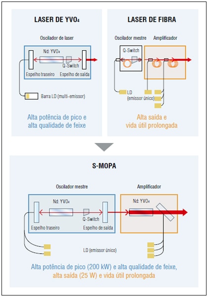 Um laser YVO4 de alta qualidade é usado como o oscilador mestre e, em seguida, alimentado em um amplificador que utiliza a tecnologia FIBRA, para combinar o melhor que as duas tecnologias têm a oferecer.