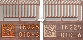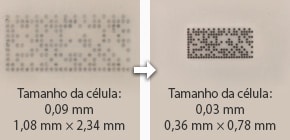 Códigos 2D extremamente pequenos marcados com alta definição.
