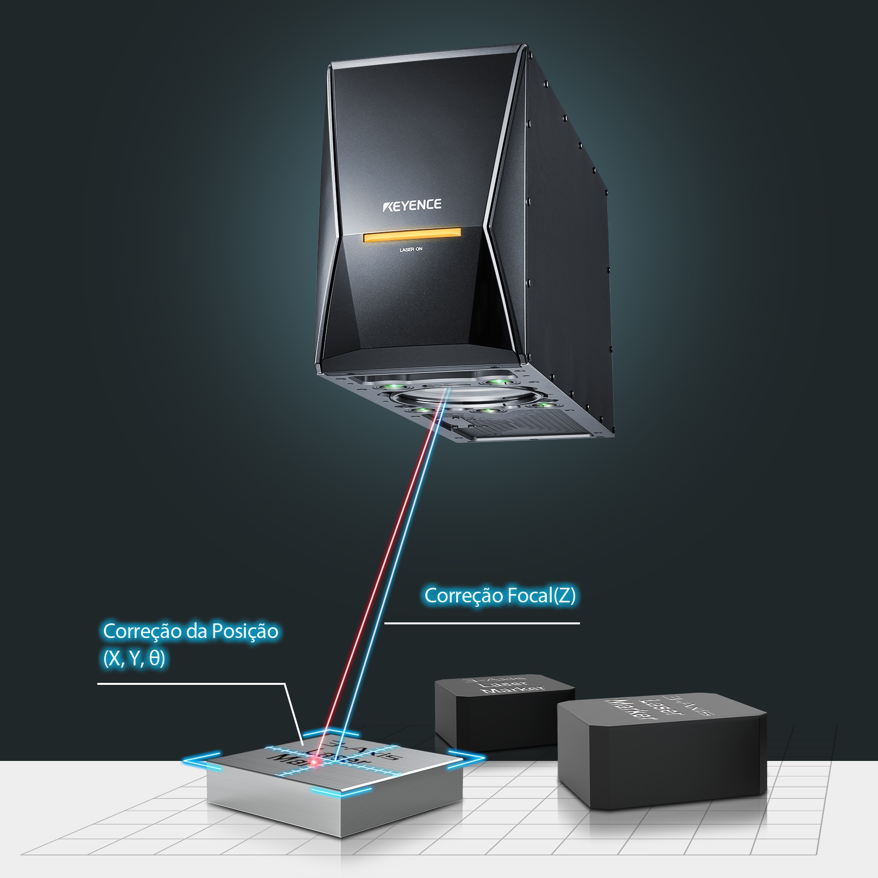 A Série MD-X contém uma câmera no interior da cabeça de marcação a laser que pode identificar automaticamente o formato de um alvo. O marcador a laser pode então ajustar os deslocamentos de X, Y e teta para assegurar que a posição de marcação sempre esteja correta.