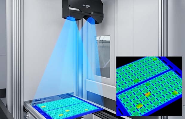 O Scanner de captura instantânea a laser 3D da Série LJ-S8000 é o primeiro no mundo a adotar um método de detecção de varredura acionada por motor. A fonte de luz laser integrada e o mecanismo de varredura eliminam a necessidade de iluminação externa, lentes, um palco móvel ou um codificador. Isso possibilita realizar não apenas a inspeção (dimensionamento, aparência, forma, etc.), mas também a diferenciação apenas instalando o sensor. Inspeções 100% em linha de altíssima velocidade e altíssima precisão agora são possíveis para uma ampla variedade de alvos compostos por uma grande variedade de materiais com velocidades de geração de imagens de apenas 0,2 segundo e repetitividade de 0,3 µm. Enquanto isso, a função de Navegação por imagens da KEYENCE torna o ajuste tão fácil quanto selecionar a imagem de melhor qualidade, eliminando a necessidade de habilidades especializadas e reduzindo significativamente o tempo e o esforço necessários na inicialização ou na reconfiguração dos parâmetros.