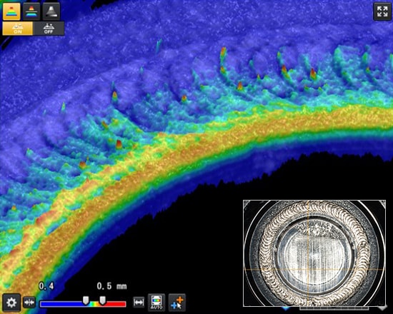 O alinhamento de perfil permite a criação de uma imagem 3D ideal. Isso obtém inspeções estáveis e em linha para mossas, lascas e outros defeitos.