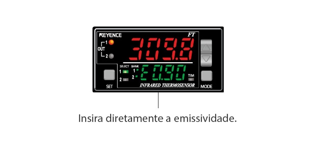 Configurar a emissividade para um material alvo de medição específico é simples, com apenas duas etapas. A emissividade pode ser calculada e definida automaticamente, bastando inserir a temperatura medida de um alvo. Entretanto, valores de emissividade conhecidos podem ser inseridos diretamente.