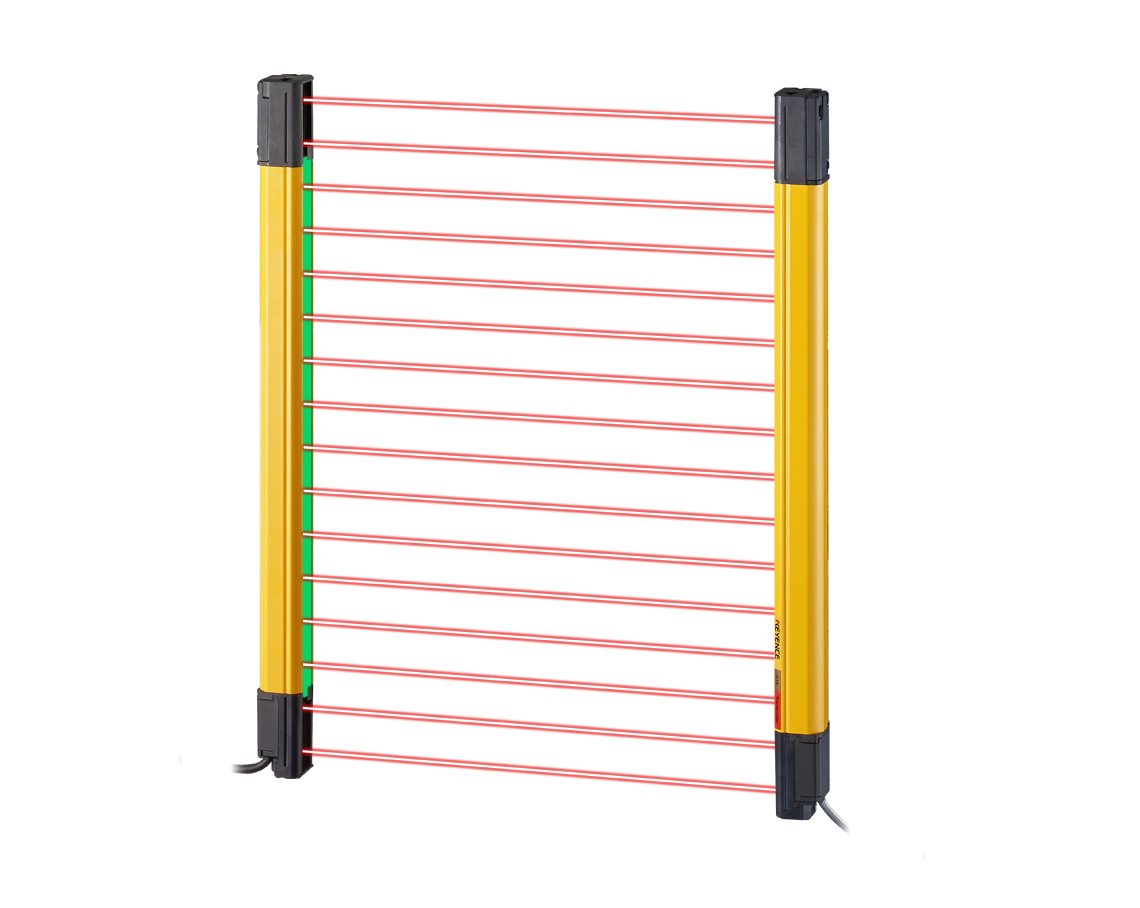 Cortinas de luz de segurança são dispositivos de segurança que criam uma barreira virtual ao redor de um perigo. Esses dispositivos atendem aos mais elevados padrões de segurança de Type4, SIL3, Category4 e PLe. A integração é eficiente e fácil, com uma área ocupada mínima, estrutura durável e opções de fiação reduzida. Cada modelo atinge o alto grau de proteção de IP65/IP67.