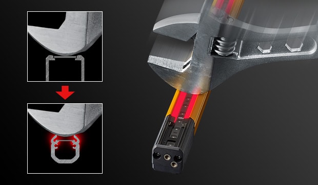 Embora tenha um tamanho compacto (22 × 22 mm), a Série GL-V conta com um corpo robusto de aproximadamente 3 mm de espessura e uma estrutura de batente duplo para proteger a superfície da lente. O grau de proteção de resistência ao ambiente atende aos padrões IP65/IP67.