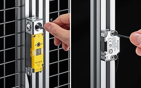 Chaves de segurança são componentes de segurança que podem ser instalados em portais e portas para detectar entradas. Esta linha de produtos inclui modelos que utilizam métodos de energização para abrir e para fechar. Estão disponíveis também os tipos sem contato, que eliminam problemas normalmente causados por poeira, detritos e desgaste a longo prazo.