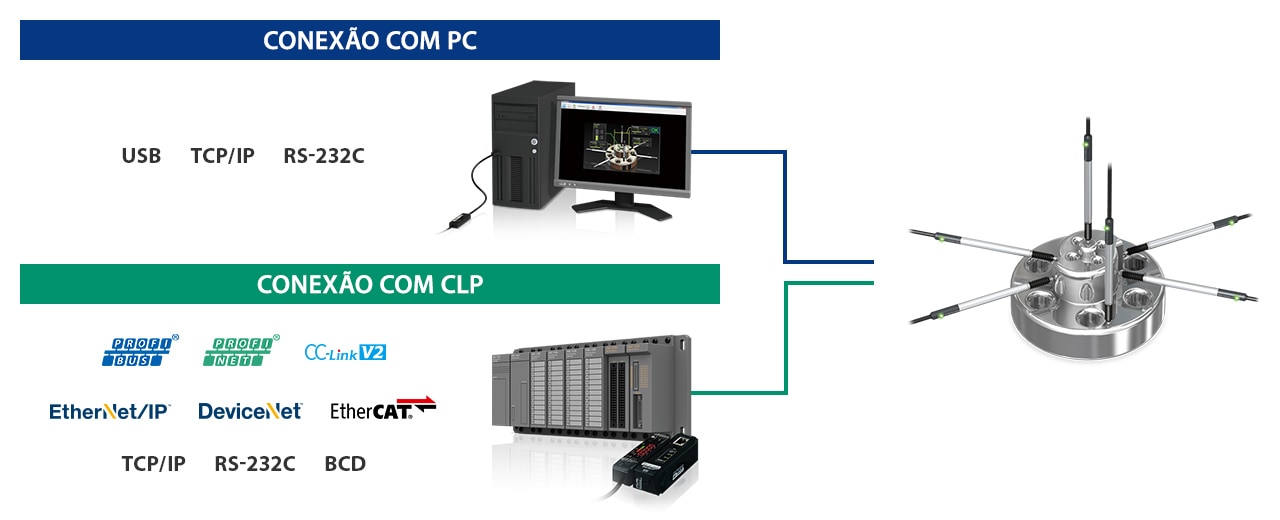 Com um foco crescente na rastreabilidade e IoT, a necessidade de registrar valores está se tornando cada vez mais presente. Os sensores da KEYENCE incluem uma linha de produtos diversificada de unidades de comunicação capazes de se comunicar com PCs e PLCs de vários fabricantes. A fiação simples do amplificador possibilita reduzir muito o trabalho de cabeamento.