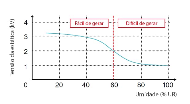 Relação entre umidade e quantidade de eletricidade estática gerada (exemplo típico)