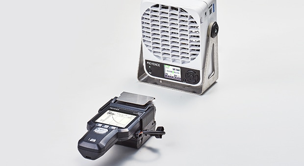 O sensor eletrostático portátil da KEYENCE é muito usado como um modelo básico para quantificar cargas elétricas de eletricidade estática. Ele também pode medir temperatura e umidade, possibilitando uma compreensão abrangente da relação entre as condições ambientais e a eletricidade estática. Além disso, ele pode avaliar o desempenho da eliminação de estática, como a velocidade e o equilíbrio de íons, de ionizadores. Dessa forma, esse sensor promove a operação e a manutenção eficazes dos ionizadores, além de ajudar a prevenir problemas de eletricidade estática. Esse sensor portátil possibilita medições flexíveis em qualquer lugar, oferecendo a grande vantagem de atender a diversas necessidades em aplicações no local.