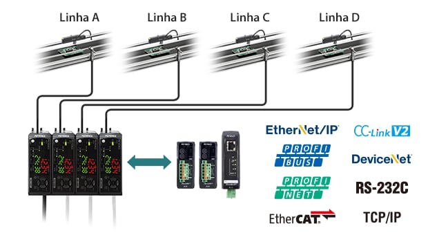 As especificações padrão incluem um sistema de julgamento independente com três saídas e uma saída analógica de tensão/corrente para coletar e fornecer a quantidade de eletricidade estática do alvo, bem como os dados de temperatura e umidade da área ao redor. Com uma unidade de comunicação, é possível transmitir simultaneamente dados de até oito unidades principais e unidades de expansão conectadas. A capacidade de ler dados e reescrever configurações de PCs e CLPs contribui para uma redução significativa das horas de trabalho necessárias para configuração e operação.