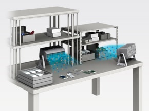 Um ventilador de alta potência e uma estrutura de palhetas de ventilação foram incorporados para oferecer uma área de eliminação de estática ampla com a maior velocidade em sua categoria.