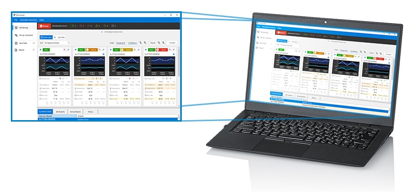 Determine o status de até 100 dispositivos com apenas um PC sem precisar estar no local. As configurações também podem ser alteradas conforme necessário, sendo possível ter os resultados em Excel.