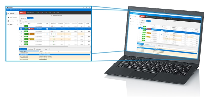 O Ionizador Multissensor da Série SJ-F700 oferece automação completa da manutenção periódica – uma tarefa essencial com qualquer eliminador de estática. Tanto a limpeza quanto a manutenção da sonda são feitas automaticamente pela unidade, o que elimina a necessidade de verificar o desempenho da eliminação de estática. Oferecendo uma operação completamente livre de manutenção e garantindo a melhor eliminação de estática contínua da categoria (com um equilíbrio de íons de +/- 1V, velocidade de eliminação de 0,5 segundo e uma área de eliminação de estática de 3 m), o SJ-F700 torna mais fácil do que nunca resolver problemas de estática. Use a eliminação de estática livre de manutenção com o ventilador de eliminação de estática SJ-F700 para ESD (descarga eletrostática) e adesão de objetos estranhos.