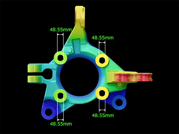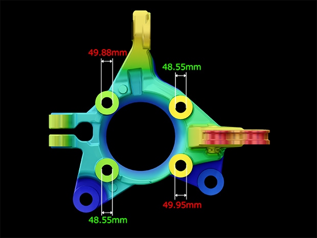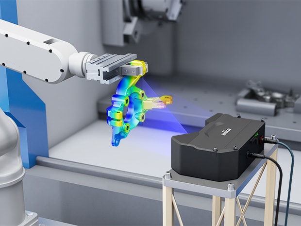 Após a usinagem ser concluída, a peça pode ser descarregada por um robô e, segurando-a na Série LJ-S8000, passar por uma inspeção dimensional 3D. Usar dados 3D calibrados ajuda a melhorar a qualidade.