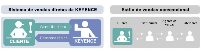 A KEYENCE presta suporte aos clientes com amplos conhecimentos de fabricação e automação. Da seleção de modelos à operação de linhas, os nossos engenheiros de vendas fornecem um suporte abrangente no local, incluindo instruções de operação e precauções relativas a produtos após a adoção desses.