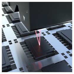 A medição sem contato é efetuada em altas velocidades, de forma que é possível uma medição estável mesmo que o alvo se mova.