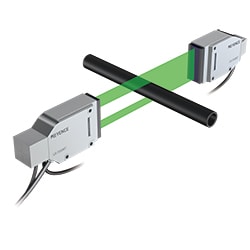 Esses sensores medem o diâmetro externo de um objeto cilíndrico. Embora as medições referenciadas aqui sejam de um só eixo, também são possíveis medições com dois ou mais eixos.