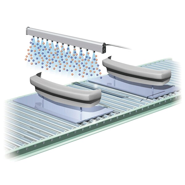 Depois que um para-choque é moldado, partículas estranhas podem aderir a ele quando transportado para o processo de revestimento. Limpar os para-choques para que fiquem limpos o suficiente para atender aos padrões de qualidade do revestimento é demorado e trabalhoso. Na pior das hipóteses, os para-choques podem até ter de ser descartados devido a partículas estranhas. Esse problema pode ser evitado com um ionizador.