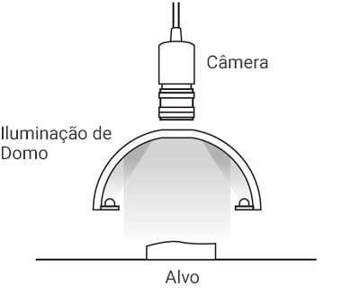 Iluminação Domo Fornece iluminação difusa para criar uma superfície uniformemente iluminada