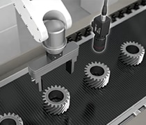 Ao se conectar um robô ao sistema de visão de máquina, é possível obter aplicações mais flexíveis de paletização de peças. A programação, que normalmente é difícil, foi simplificada, o que reduz muito o tempo e esforços despendidos na configuração.