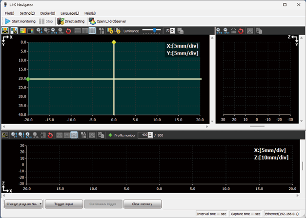 1. Check the initial status. Turn on the PC and head and connect them with each other, and start the LJ-S Navigator.