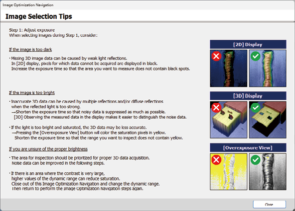 Click [Image Selection Tips] on the right of the screen to display detailed description for reference.